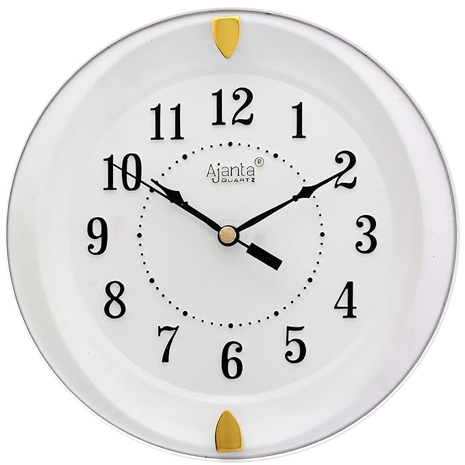Ajanta Step Movement Plastic Analog Wall Clock for Home/Office/Bedroom/Living Room/Kitchen (White, 7 Inches)