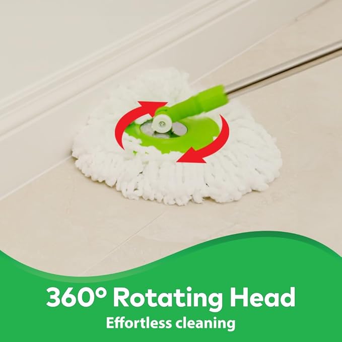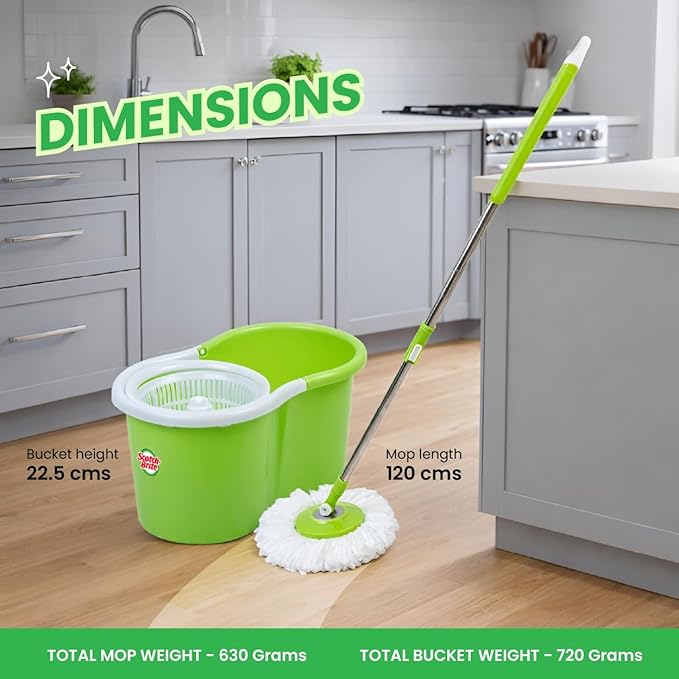 Scotch-Brite Twin Bucket Spin Mop with Easy Wring & Rinse System, 360° Adjustable Handle, High Absorbency Microfiber for Deep Cleaning on All Floor Types, 1 Extra Refill (Green)